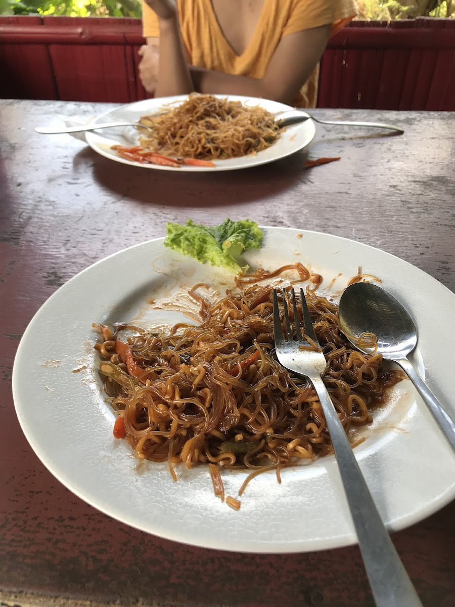 Okay price for being in a touristy area. Cute little place, extensive menu with both Western and local foods. Clean, friendly owners and located right opposite the path to the waterfall. Service is a bit slow, but the food is good!